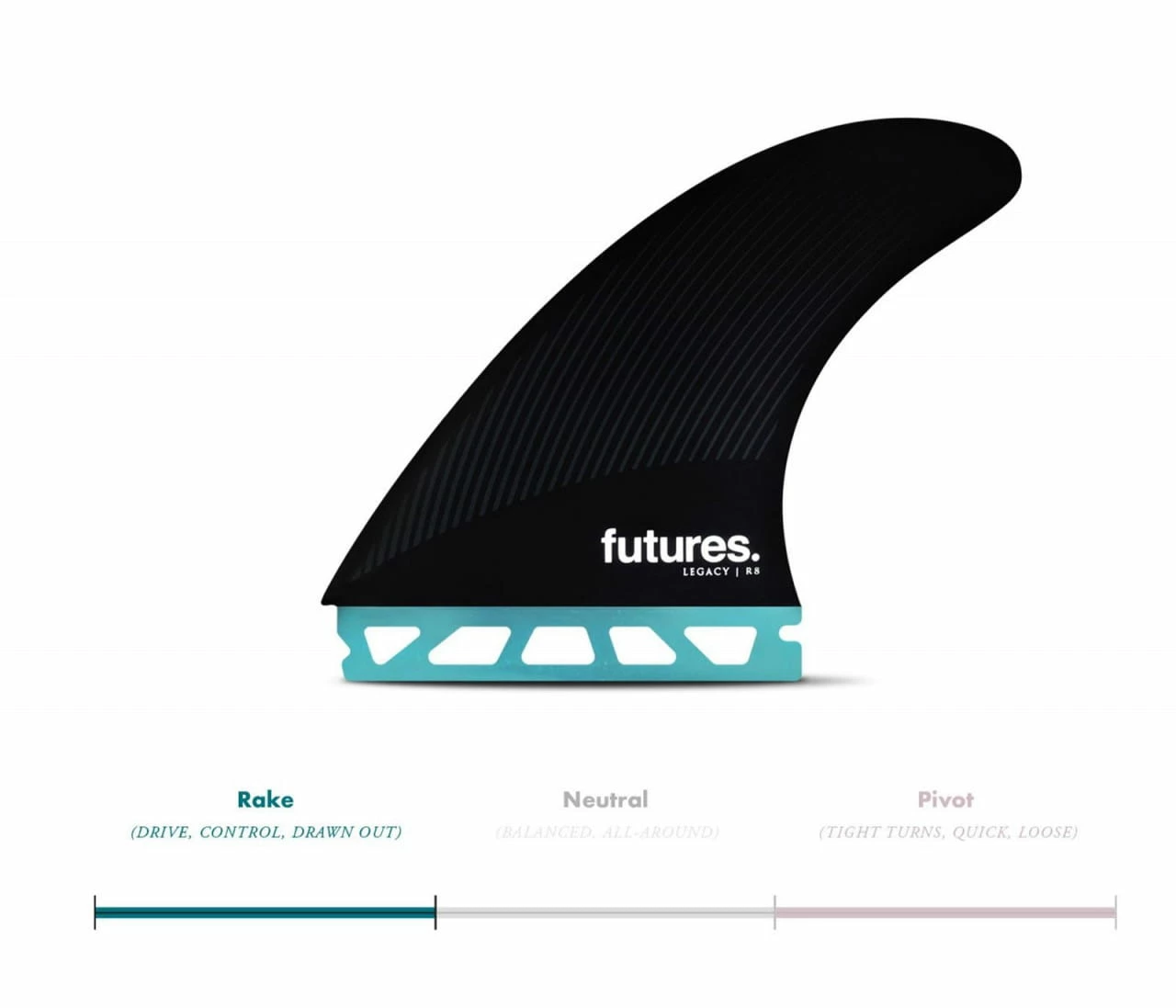 Der R8 Thruster der Legacy Series ist eine große Finne mit einer Rake-Template und ausgewogenem Fahrgefühl für mehr Halt durch Carves.